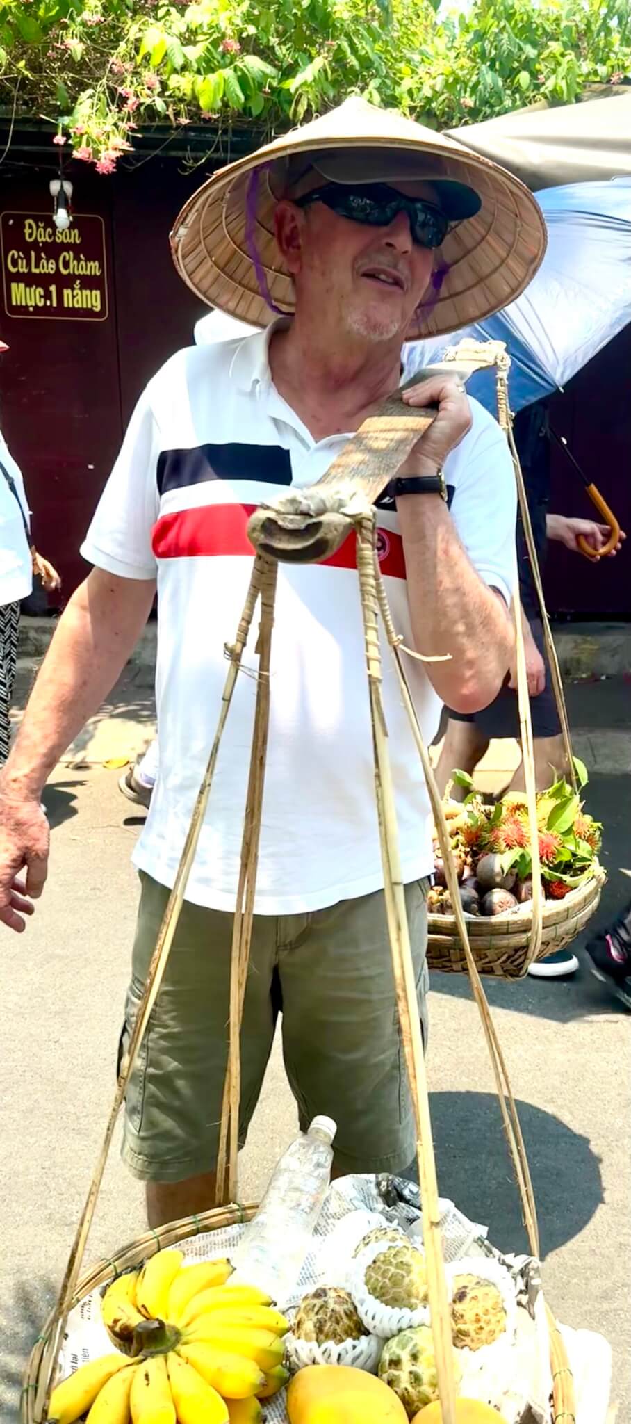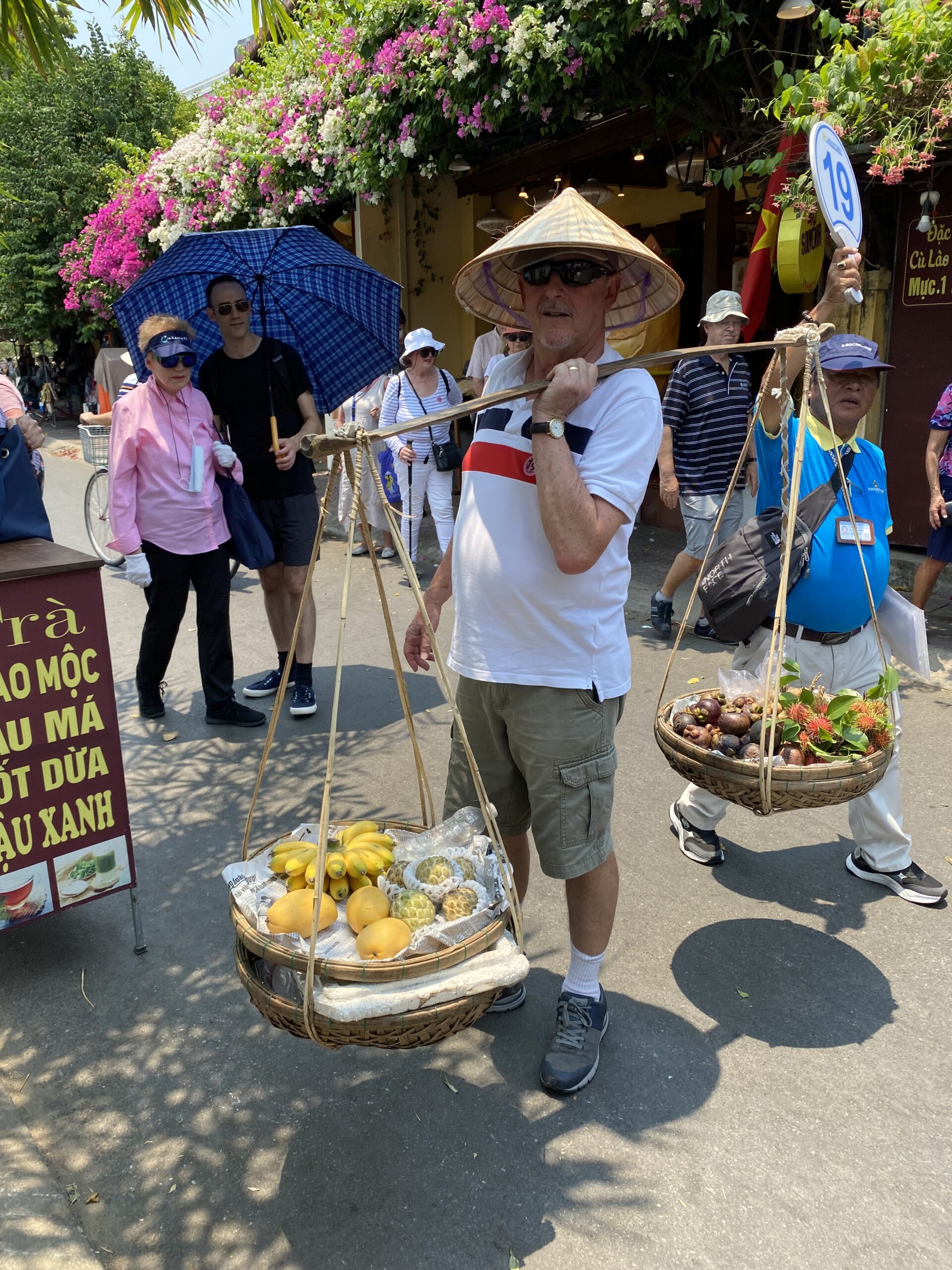 To Hoi An, an example of a fishing port with traditional wooden villages. Watch out , the hawkers are coming with hats, sunglasses, fans and more. I feel overwhelmed. How about you? I think I need the local language for thanks but get lost.