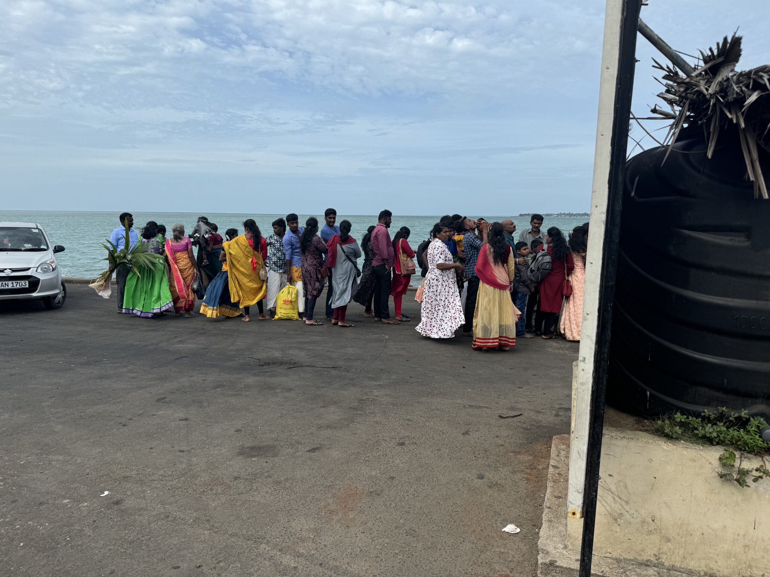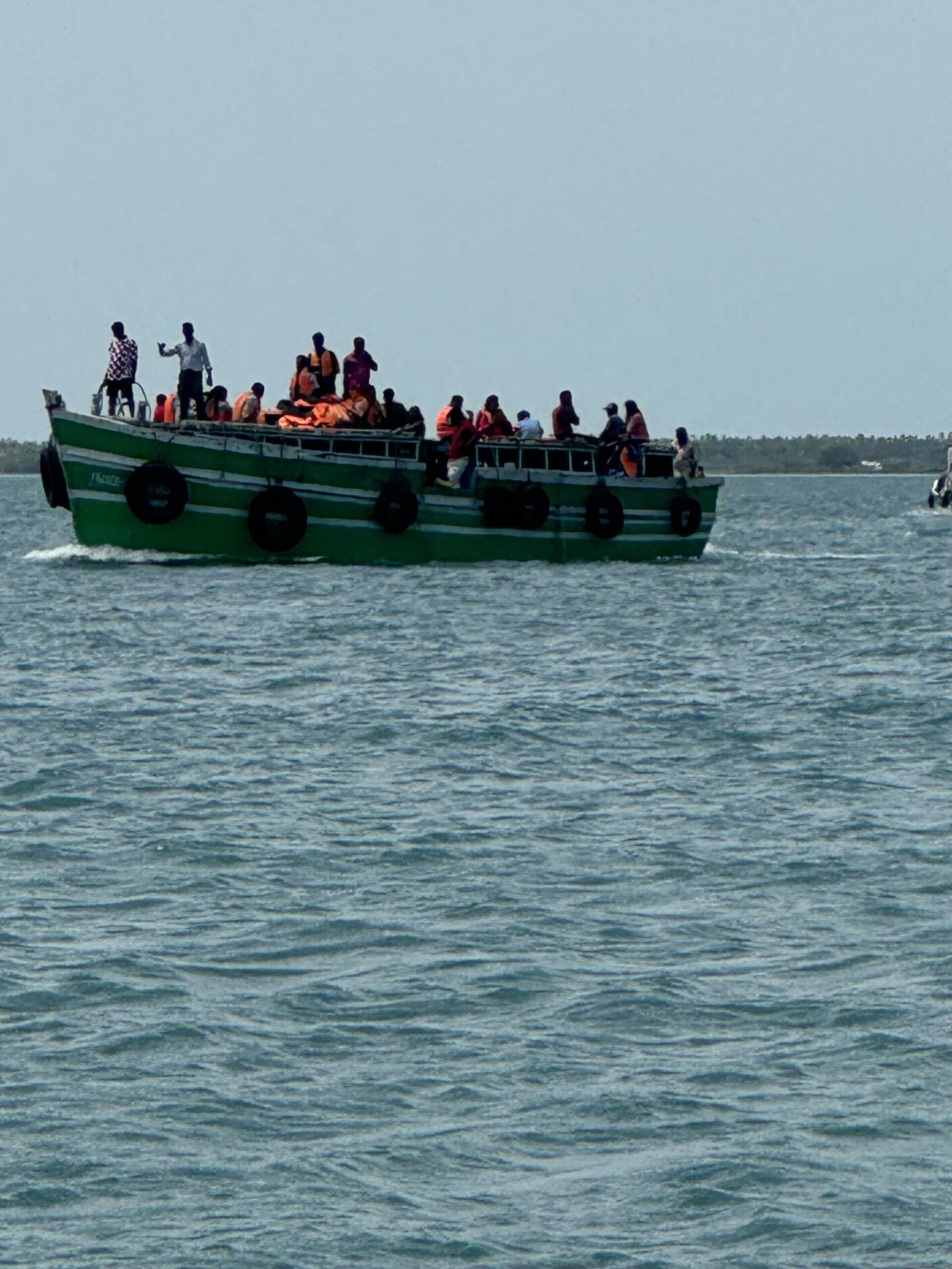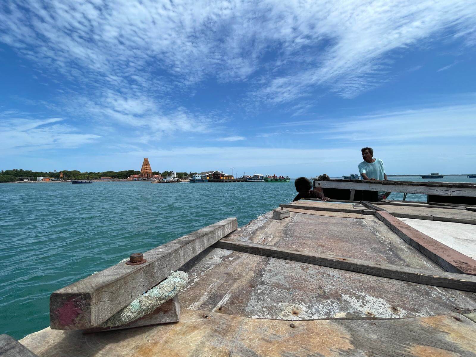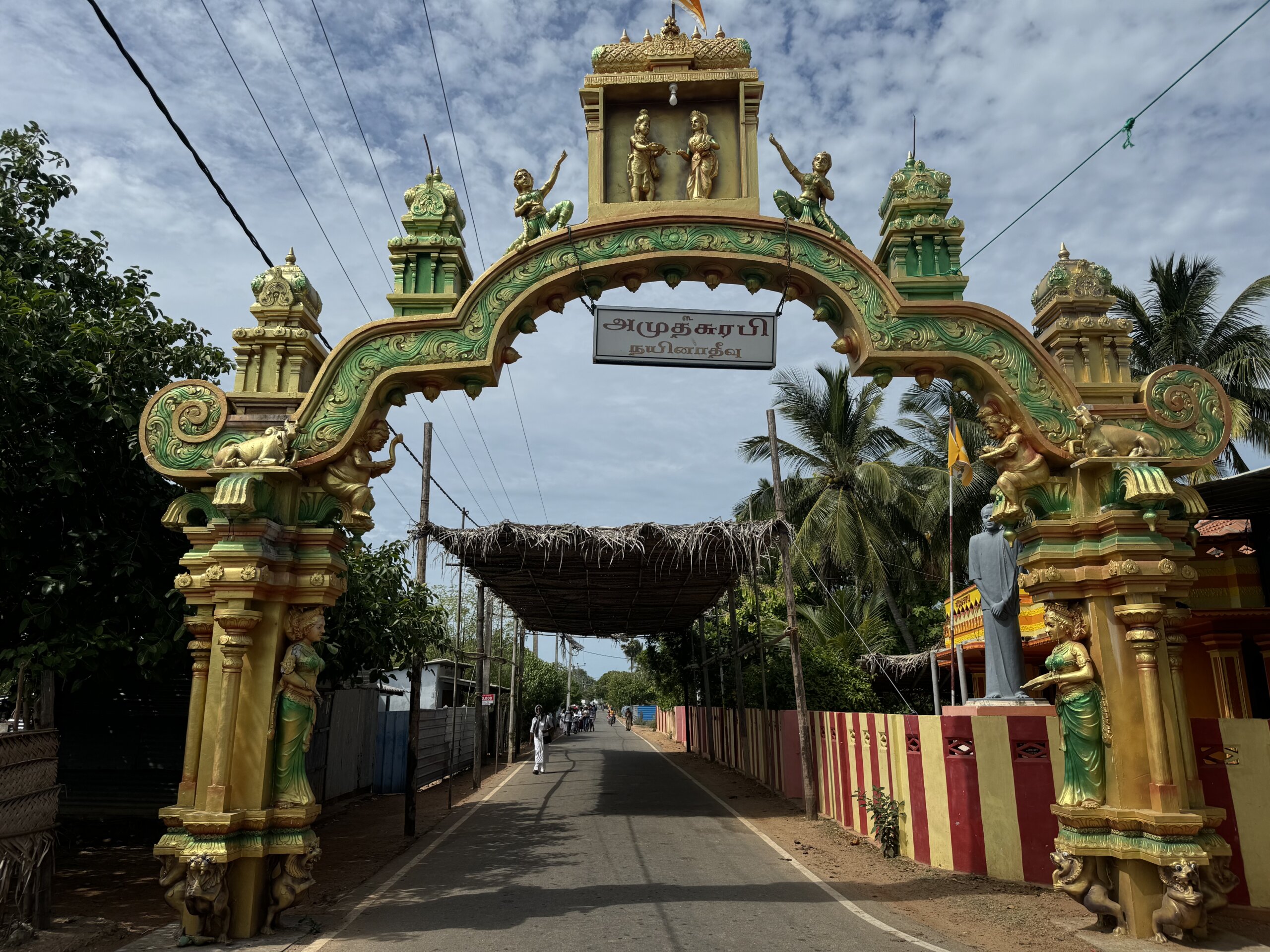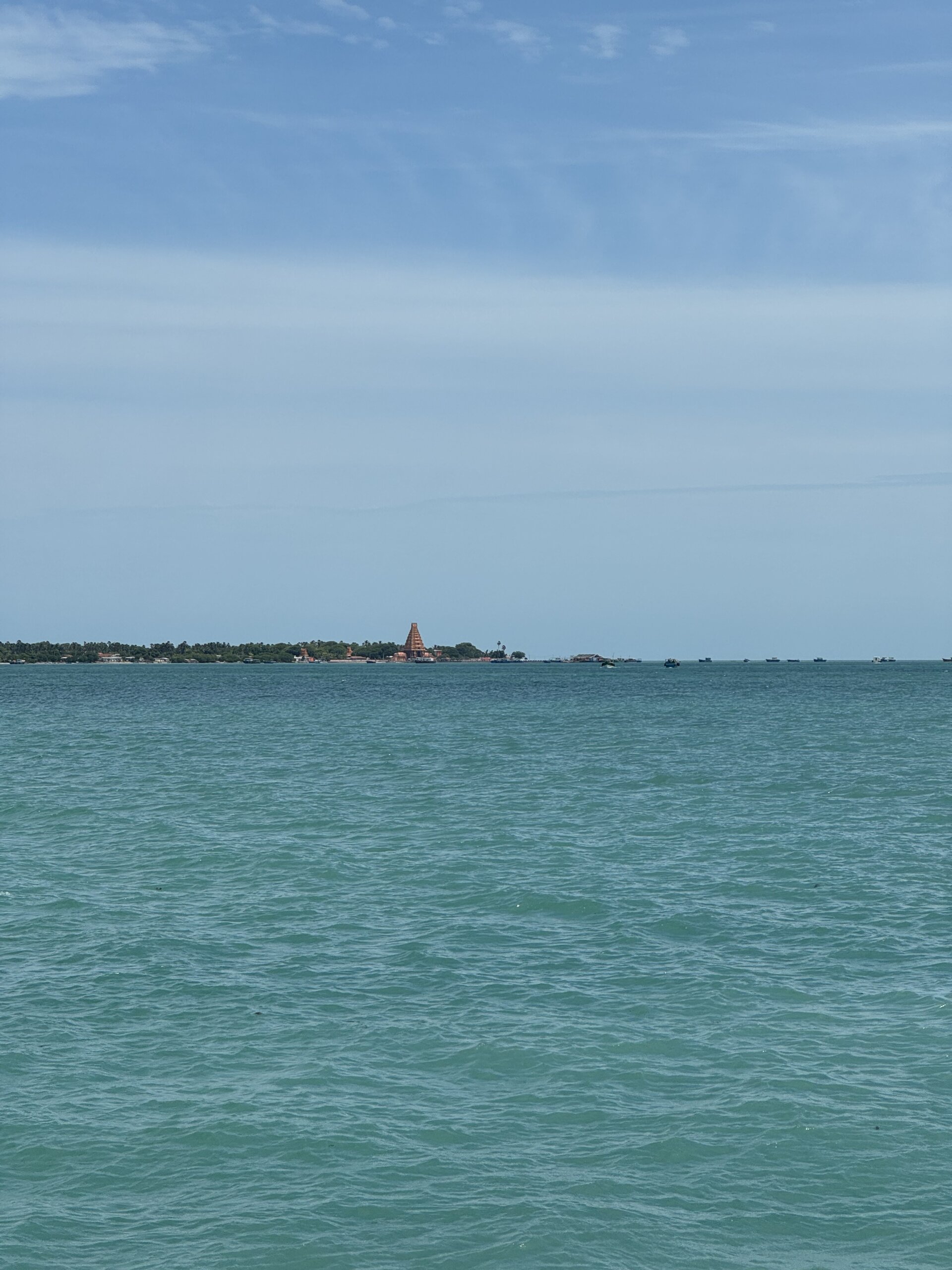 Is that the island in the distance.There are two religious sites on the island: Nagadeepa Temple and Nainativu Nagapooshani Amman kovil. The first is a Buddhist shrine ( a passing visit only) and the second is the Hindu temple we will actually enter. Ready.