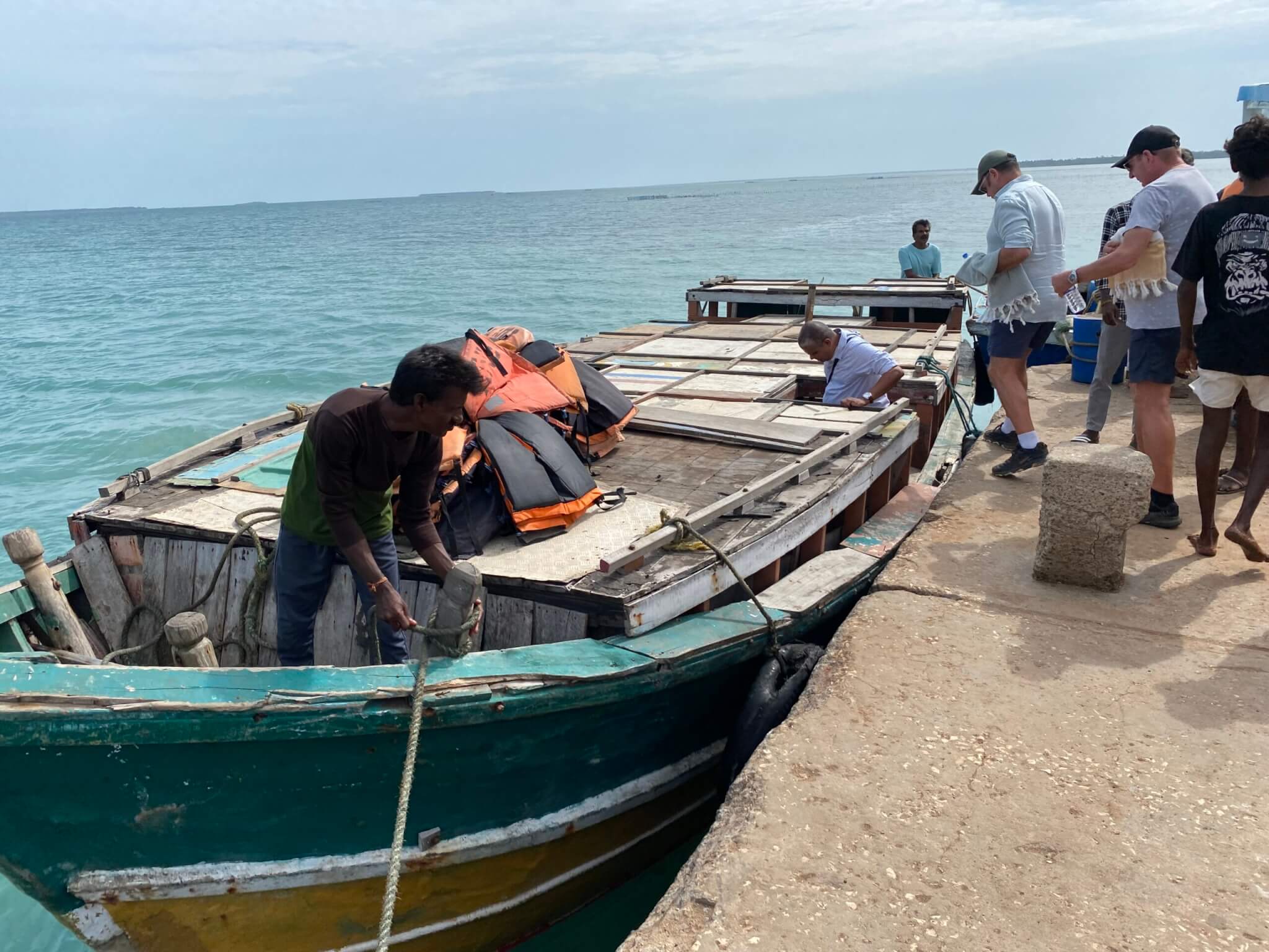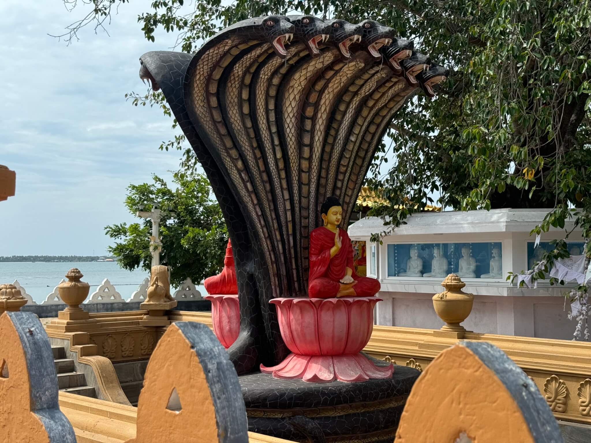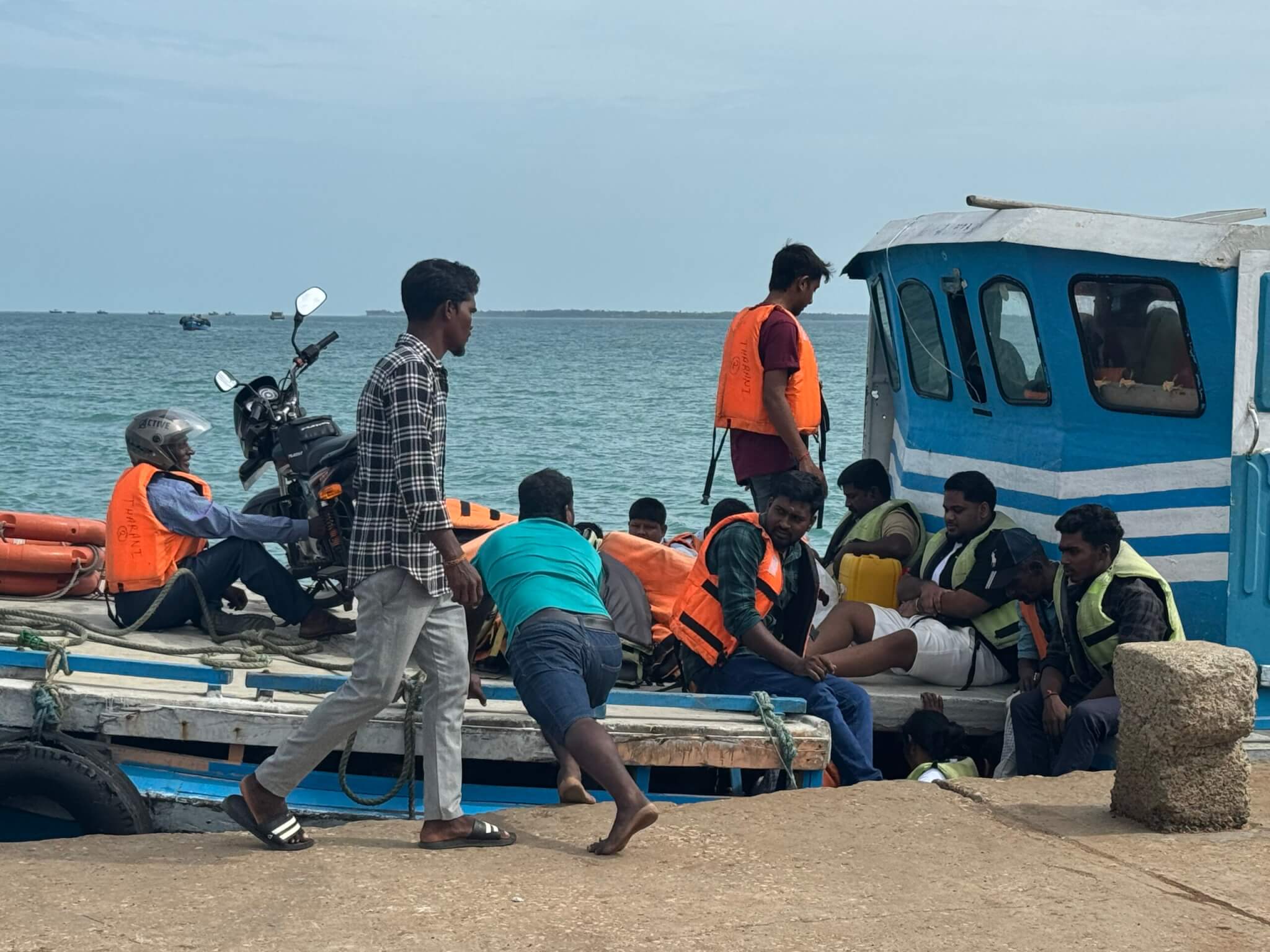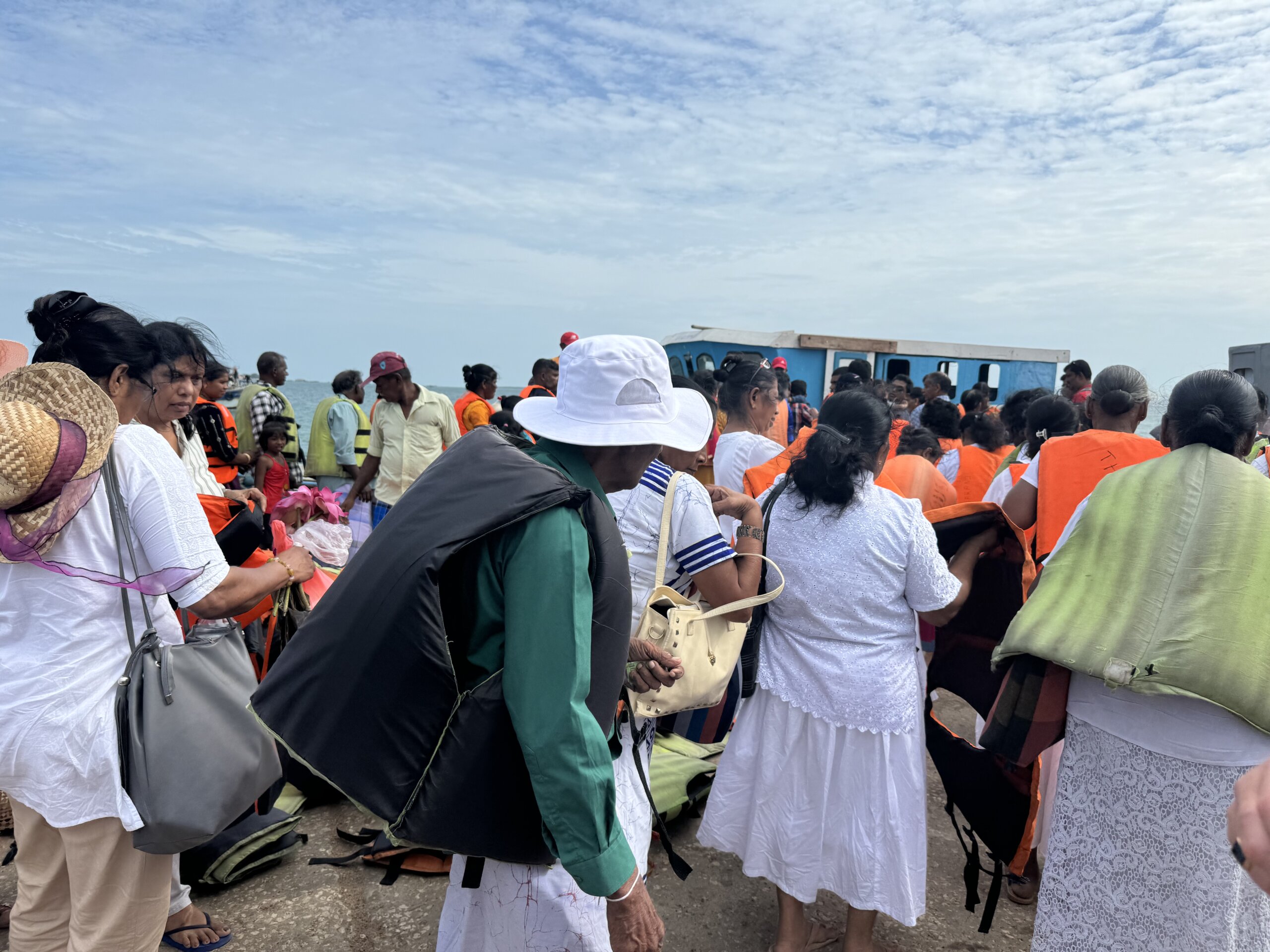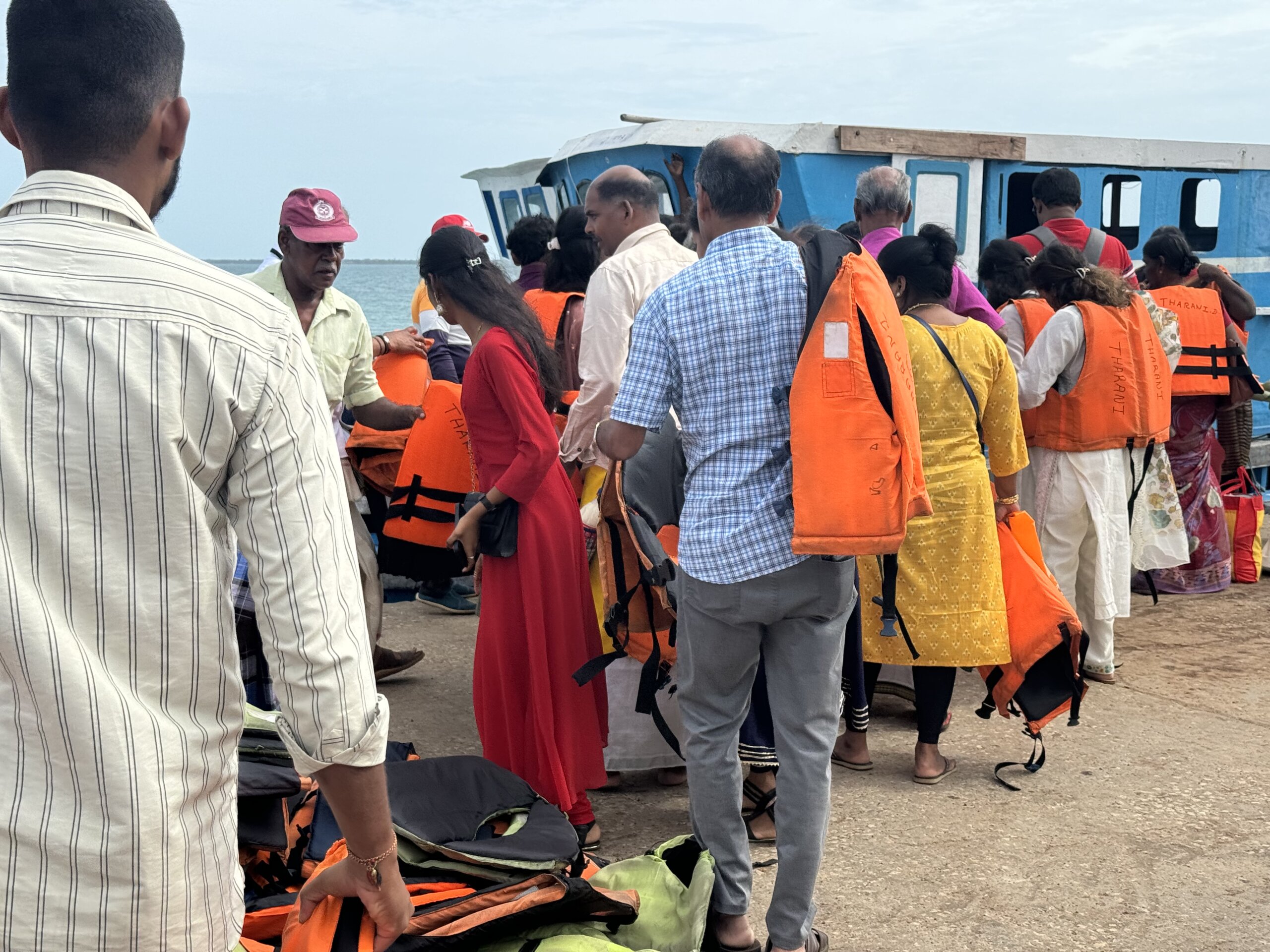 Is that the island in the distance.There are two religious sites on the island: Nagadeepa Temple and Nainativu Nagapooshani Amman kovil. The first is a Buddhist shrine ( a passing visit only) and the second is the Hindu temple we will actually enter. Ready.