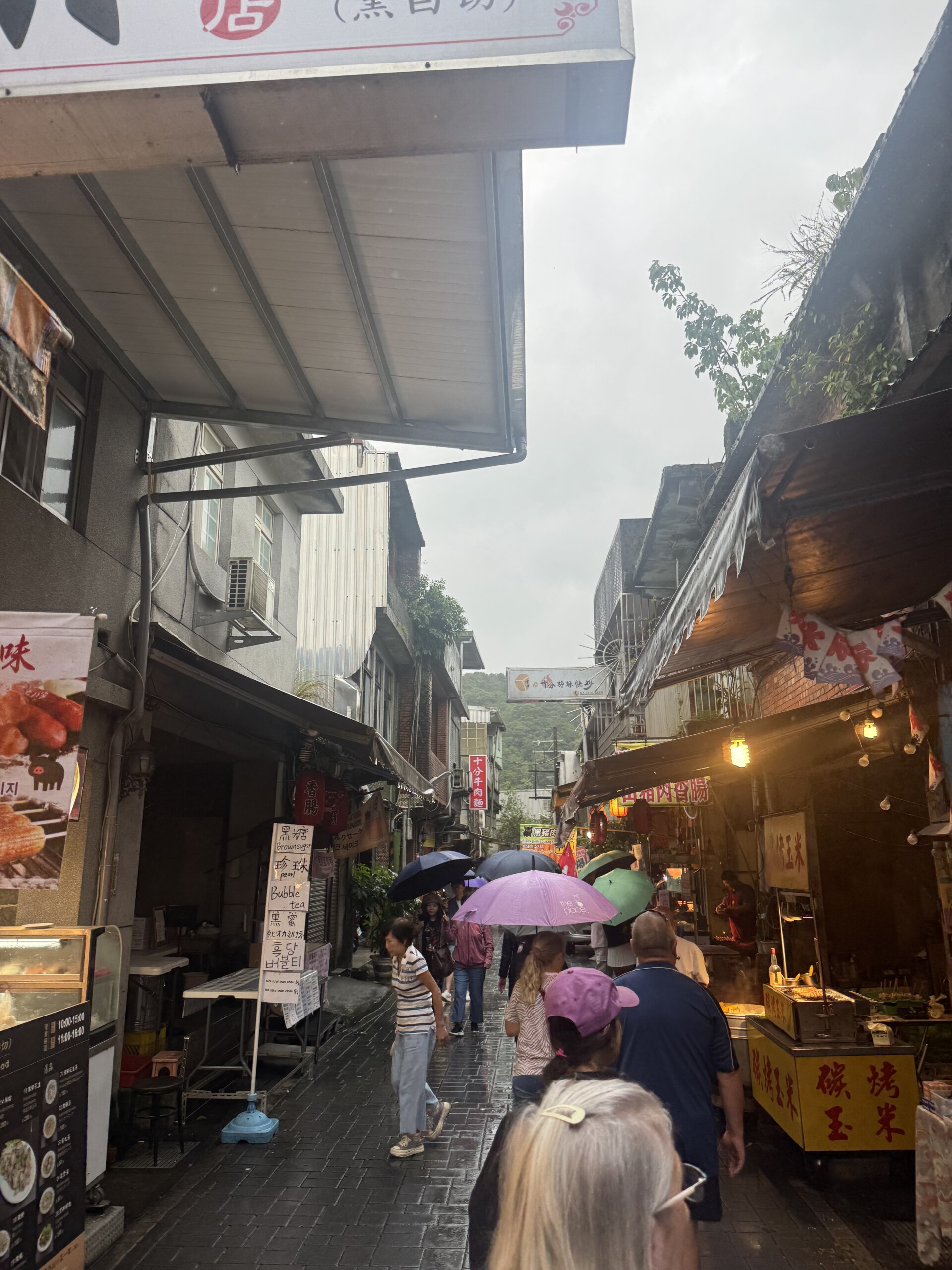 I was not looking forward to walking up the stairs in Jeifun in the rain.