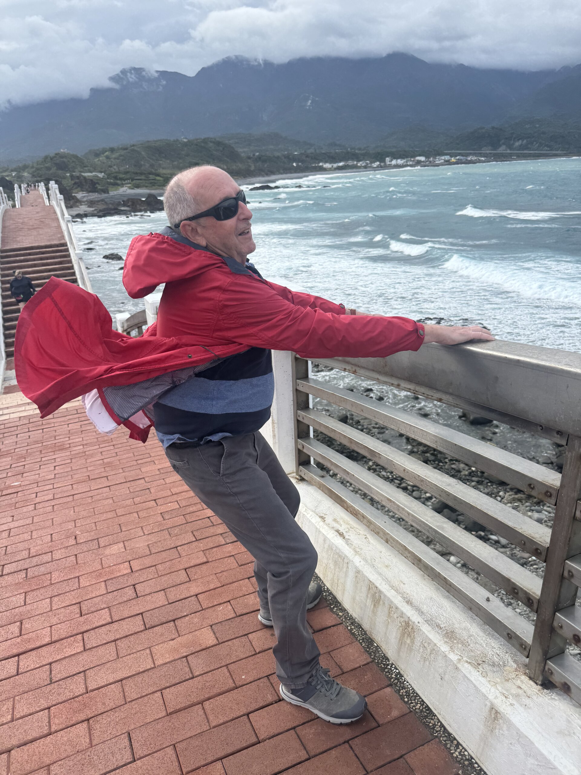 There are 544 stairs, 40 up and 40 down each side……then 29 between each arch. I counted them going over to the island and then back. With that wind blowing….i thought you might get blown away.