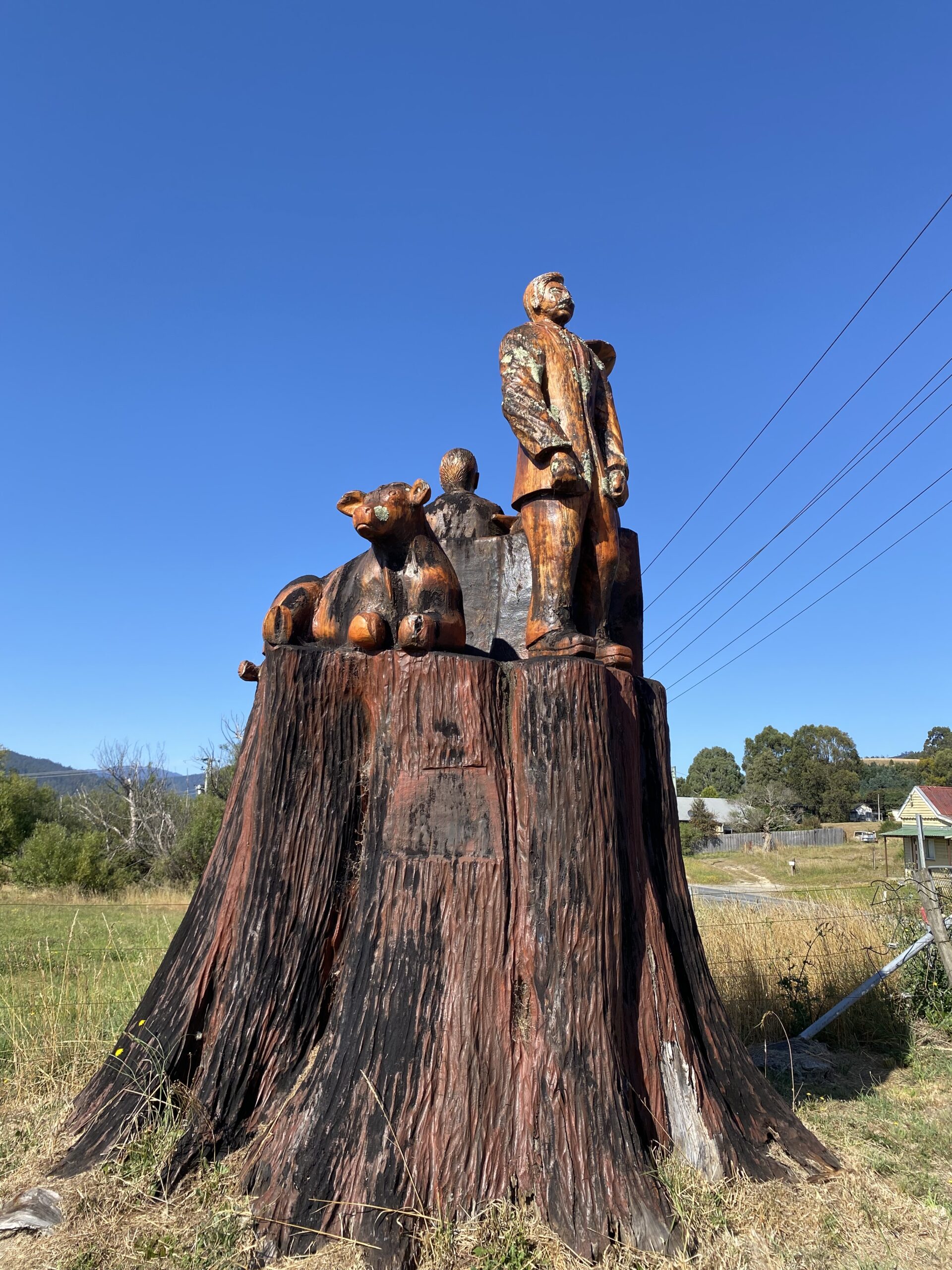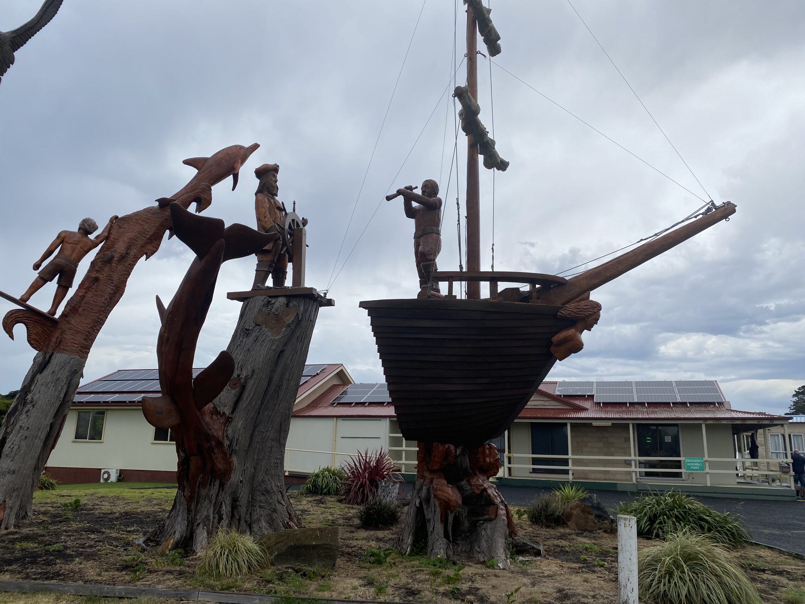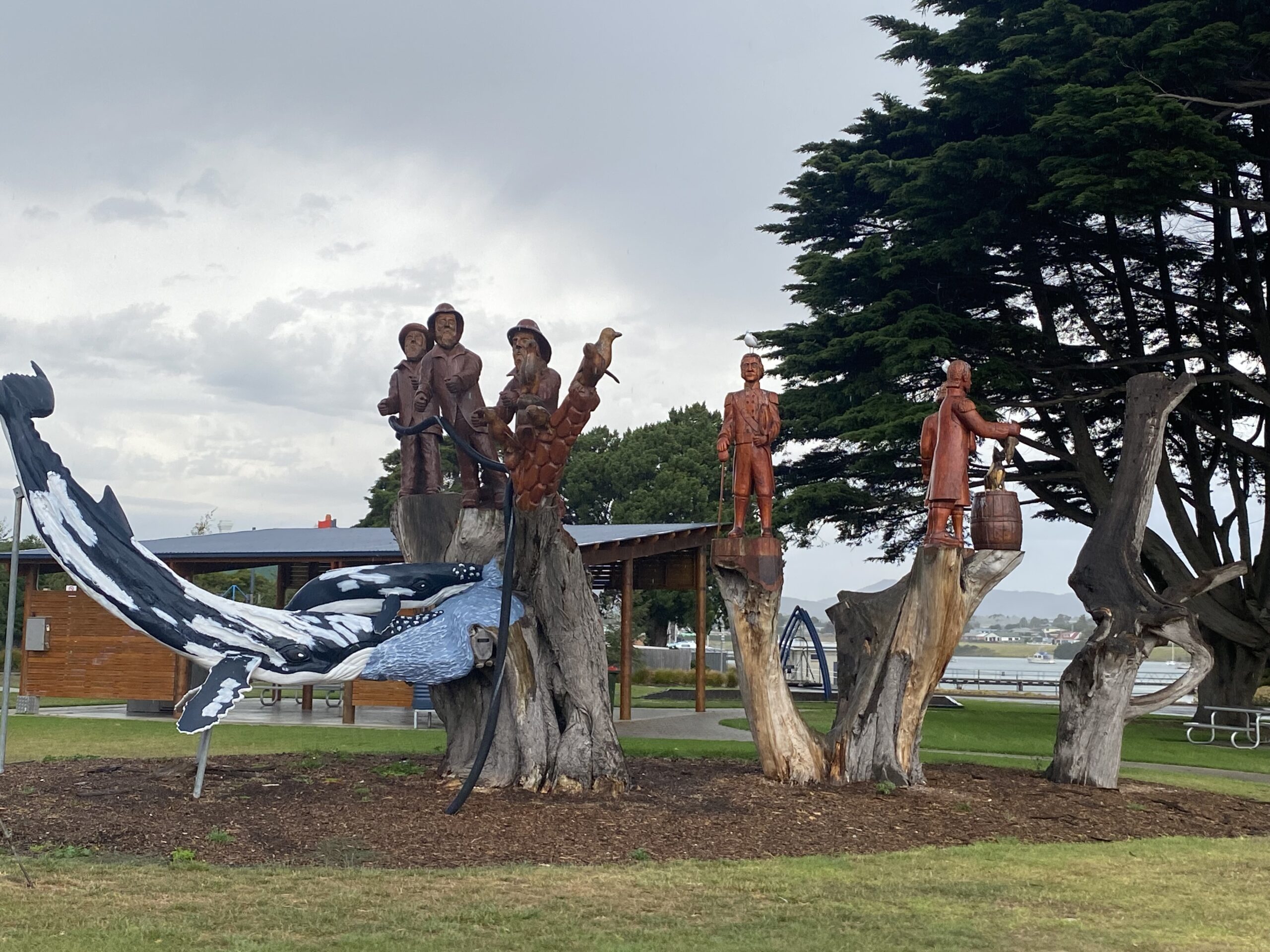 On route to Low Head we saw some wood carvings in a tree stump.This seems popular in this area as there are more in George Town. Do you know the type of tree? I will have to find out.