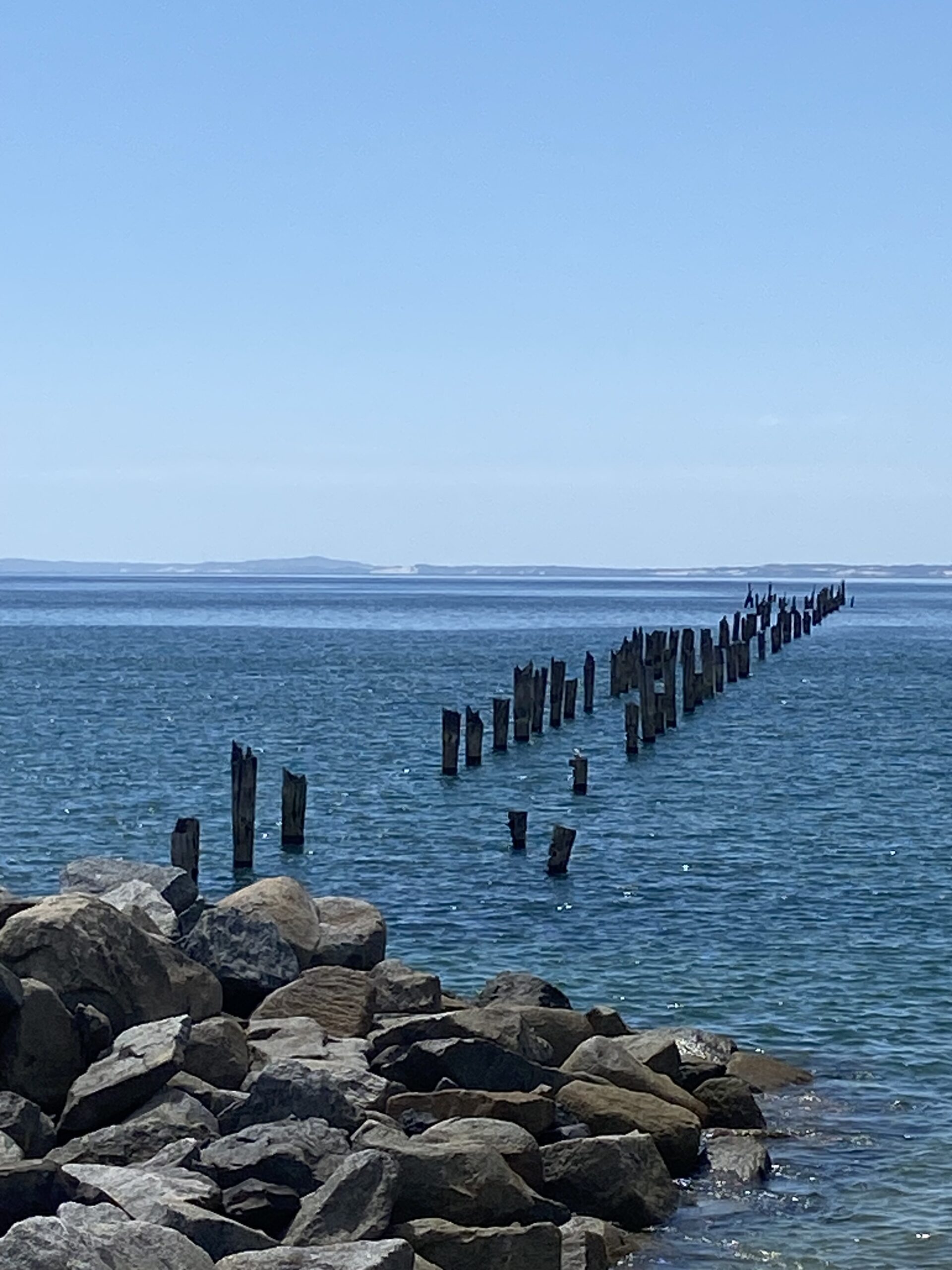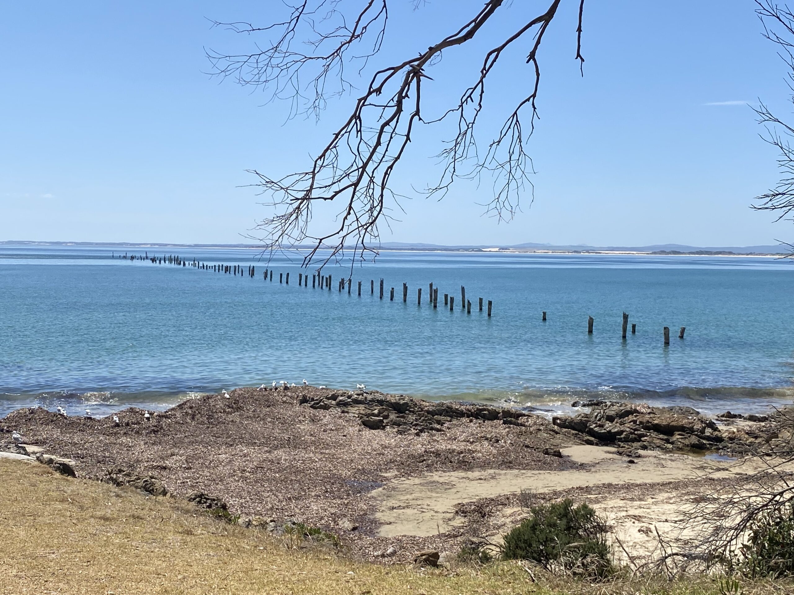 All that remains of Brisport’s timber history is the pylons of the old pier.